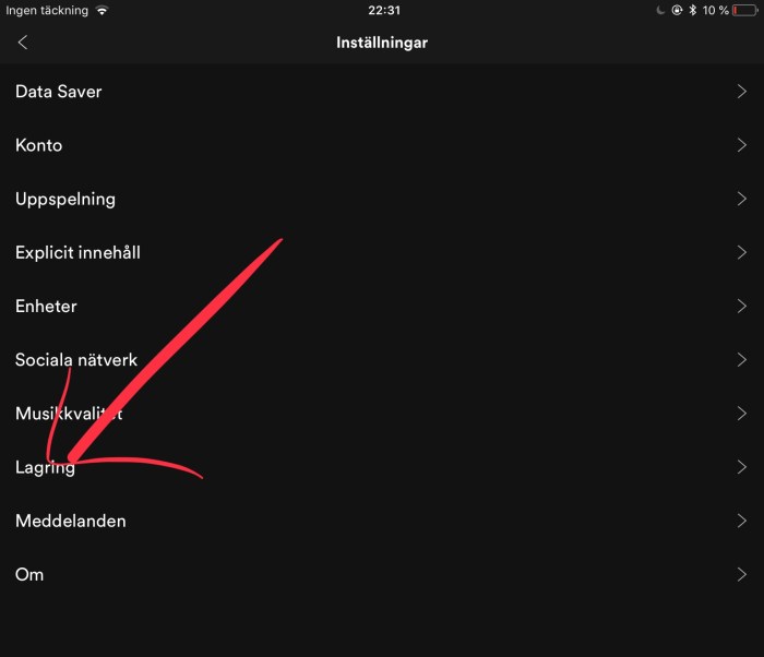 Det går att rensa cache-minnet i Spotifys app för frigöra utrymme på din enhet, utan att bli av med den musik som sparats för offlinelyssning. Spotify:s app lagrar rätt mycket data i cachen så efter tag kan lagringen ta rätt mycket plats.