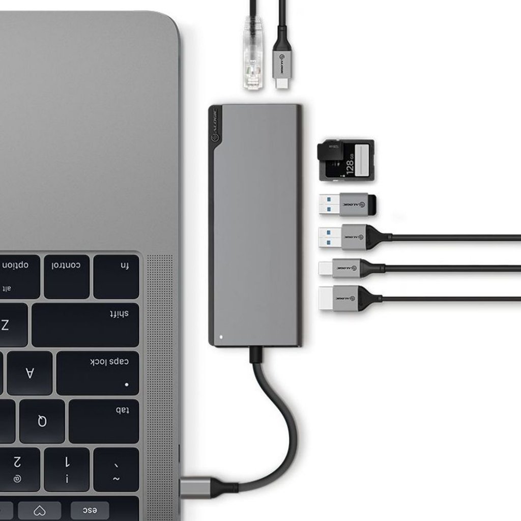 Låt oss titta närmare på Alogic Ultra USB-C Dock Plus. Här finns allt man behöver; HDMI-utgång, USB-A-ingångar, minneskorts-läsare, SD och Micro- SD och ethernet-kontakten. Det är också så att Alogic Ultra USB‑C Dock Plus klarar att skicka igenom hela 100 watt från USB-C-kontakten. Bra kräm i laddningen alltså. Det enda som egentligen saknas, är ett hörlursuttag. Byggkvaliteten är hög och sladden ganska lång vilket många gånger är en fördel. Färgmatchningen i Space Grey är bra, den svarta platsen kunde vi varit utan men visst är det här en premiumprodukt.